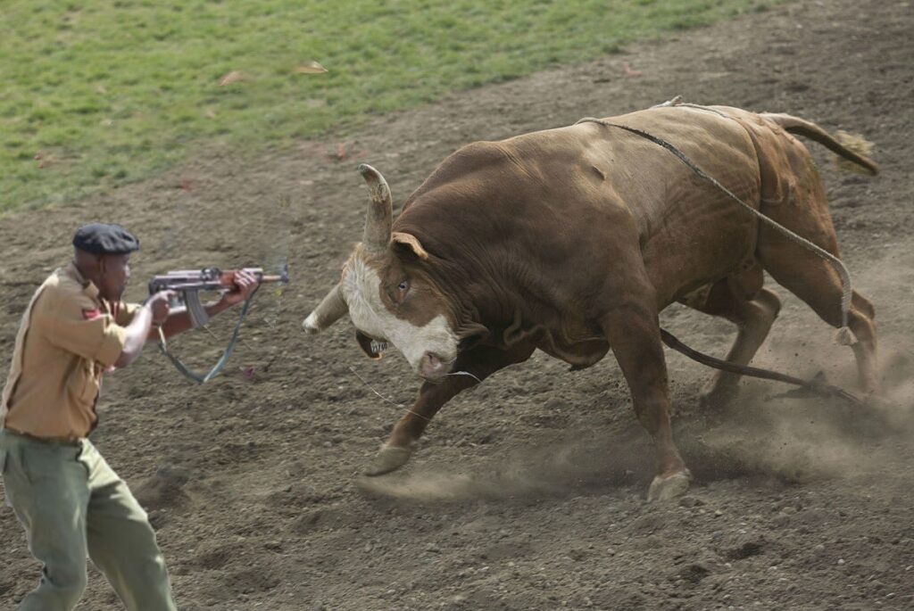 Fuming and ready to gore anybody who came close, the bull staged a 3-hour siege at the police station, with several officers who were inside unable to walk out for the fear that the bull would kill them. The situation was complicated by the fact that the local culture does not allow killing of fighter bulls, hence police could not shoot the unwelcome visitor. It was also rumored that the police also feared killing the bull because they might be forced to pay for the bull, and fighter bulls can cost up to KShs 200,000.